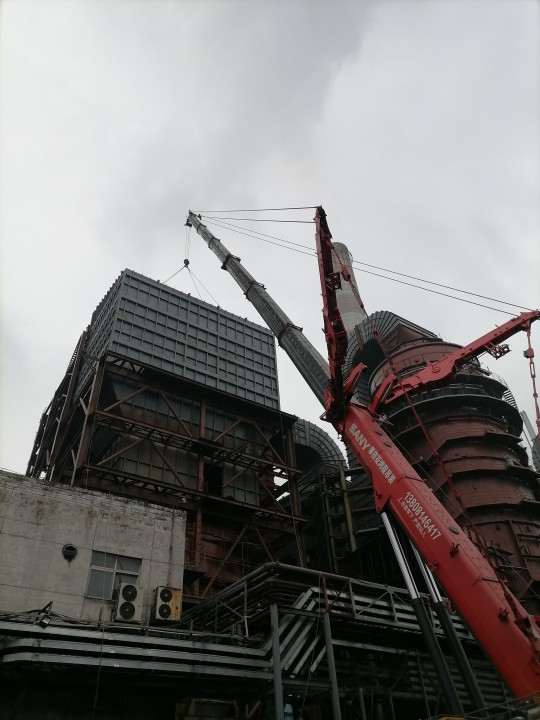 6月8日8點(diǎn)天氣晴朗,風(fēng)力1級(jí),具備良好的施工條件,上午8點(diǎn)10分500噸的吊車準(zhǔn)備就緒,吊裝人員系好了吊繩,技術(shù)員確定吊裝位置,安全員仔細(xì)檢查吊繩是否完好,各項(xiàng)工序準(zhǔn)備就緒,指吊員準(zhǔn)確指揮吊車起動(dòng),下午5點(diǎn)30分30噸重的脫硝塔鋼結(jié)構(gòu)吊裝到位,穩(wěn)穩(wěn)的焊接在脫硝塔頂部。