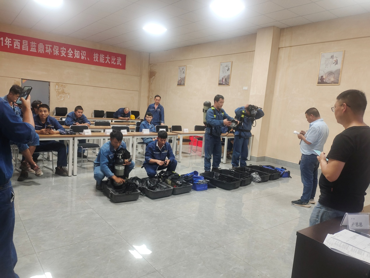 為了深入貫徹集團運維部關于第20個全國“安全生產(chǎn)月”活動精神,深入落實安全生產(chǎn)責任制度,立足防范、強化管理,使每個職工得到更好的安全教育,西昌藍鼎生產(chǎn)部結合公司實際,緊緊圍繞“落實安全責任 推動安全發(fā)展”的活動主題,在6月23日開展了“安全應知應會知識競賽”和“空氣呼吸器應急演練”。