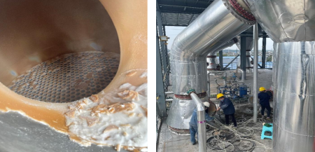 現(xiàn)場清理硝二效內部結垢