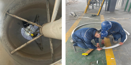 檢修現(xiàn)場更換稠厚器攪拌、硝一效主體墊子