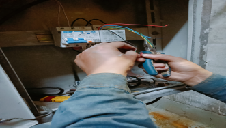 電儀人員在接自動(dòng)抽水裝置控制線
