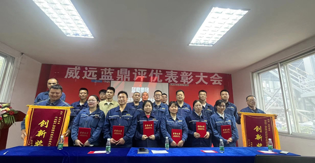 4月29日16:00,威遠(yuǎn)藍(lán)鼎在球團(tuán)脫硫利劍大課堂召開(kāi)2023年度評(píng)優(yōu)表彰大會(huì),旨在表彰過(guò)去一年中為公司發(fā)展作出杰出貢獻(xiàn)的員工和團(tuán)隊(duì)。威遠(yuǎn)藍(lán)鼎副總經(jīng)理黃安軍、集團(tuán)技術(shù)部部長(zhǎng)黃明忠、集團(tuán)商務(wù)管理部區(qū)域經(jīng)理曾中東、生產(chǎn)部副部長(zhǎng)楊平、優(yōu)秀人員共計(jì)45人參加了本次表彰大會(huì)。