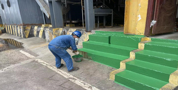 在刷漆現(xiàn)場,生產(chǎn)班組勞保穿戴規(guī)范,按照包干區(qū)域,有序地進(jìn)行刷漆。經(jīng)過一周的辛勤勞動,廠區(qū)環(huán)境煥然一新。